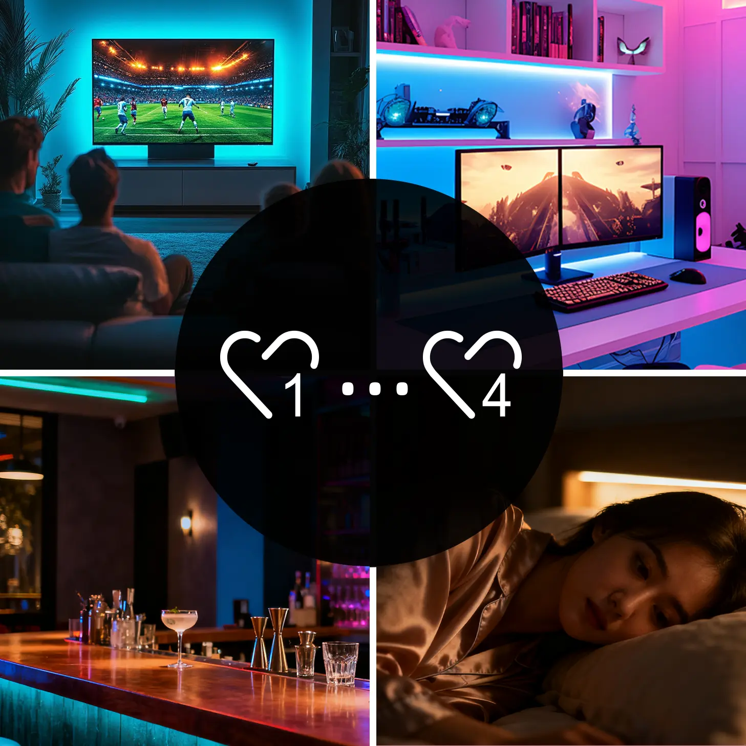 •Support 2.4G remote control. Working with “Tuya Smart” app, wireless dimming, remote control, group control, create favourite scene, timmer function, music rhythm, biological rhythm, sleeping and weak up plan, automation and tap to run function.