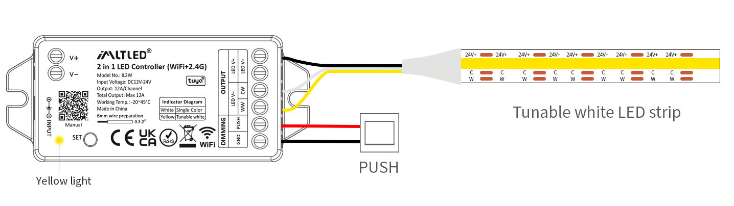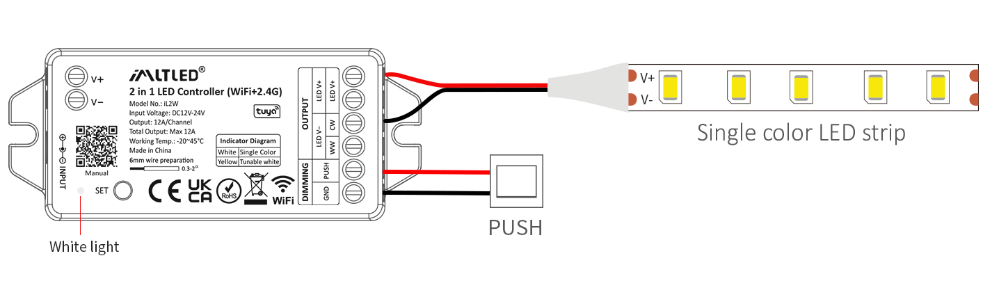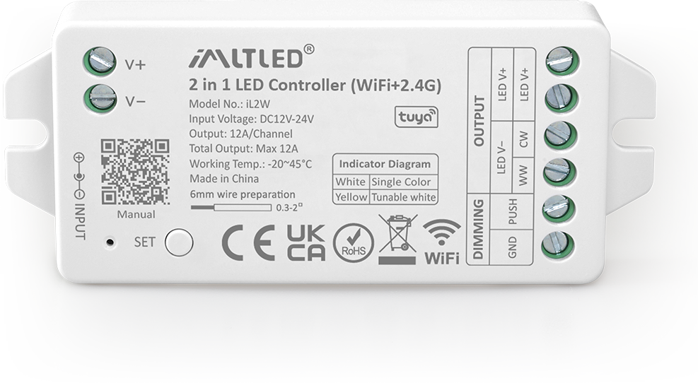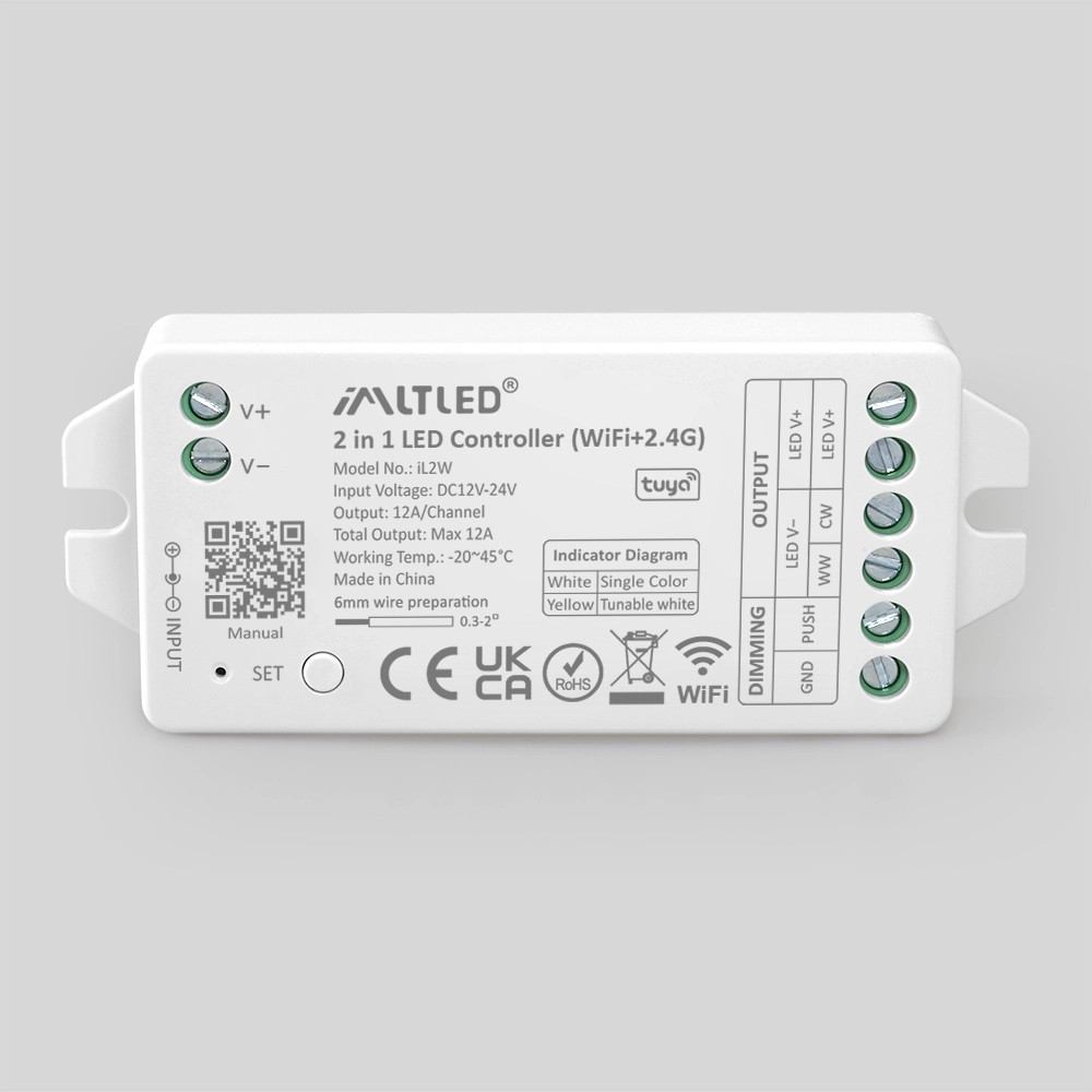 •2 kinds of output mode support 2 LED strip (Single color/Tunable white).