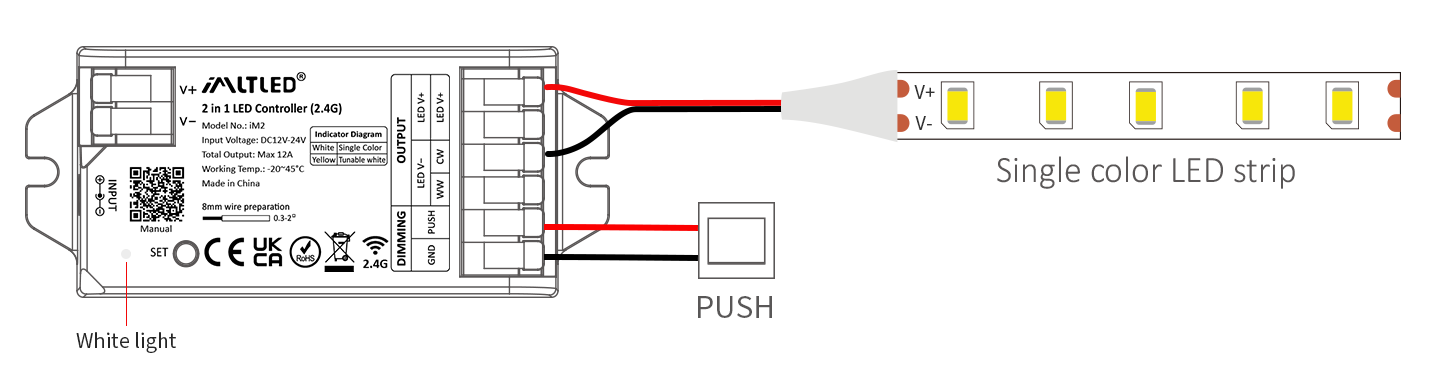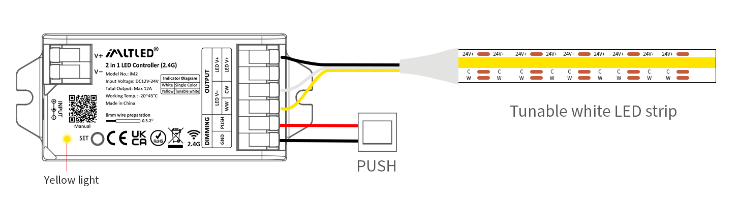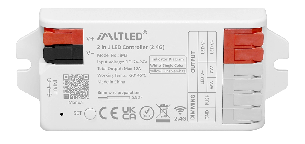 •2 kinds of output mode support 2 LED strip (Single color/Tunable white).