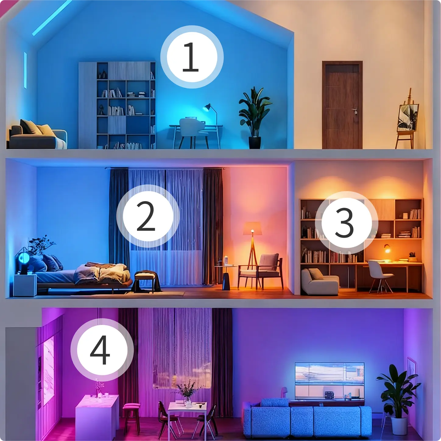 • 4 Zones individual control, countless lights in each zone
